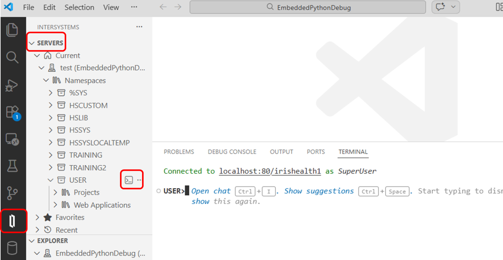 VSCode 画面左端の ObjectScript エクステンションのアイコン