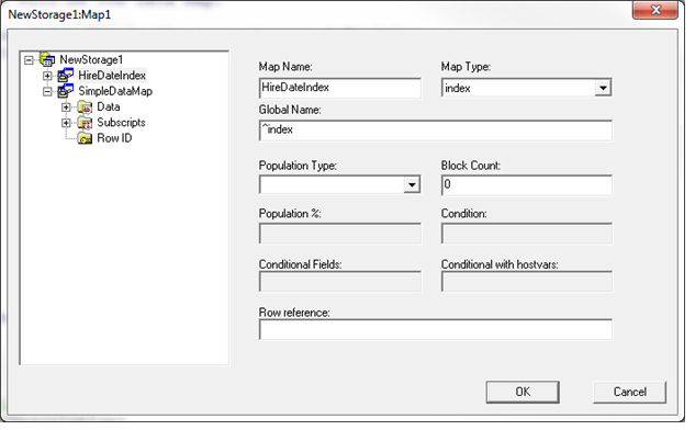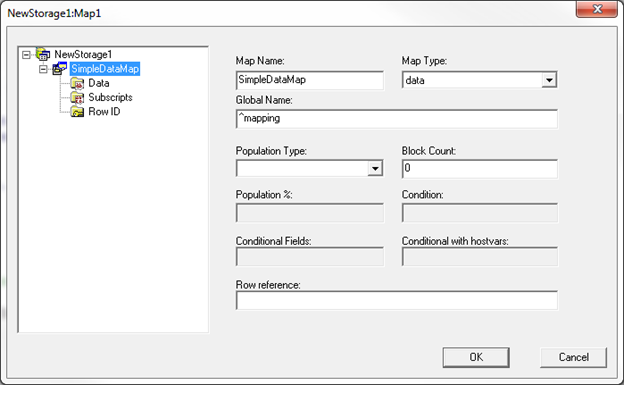 私は下のウィンドウで Map Name を変更しましたが、Map1 を使っても構いません。 唯一入力する必要があるのは、Global Name です。 「^」を付けるのを忘れないでください。 永続クラスにはそれぞれデータマップが 1 つずつ必要です。 複数のインデックスマップを持たせることができます。