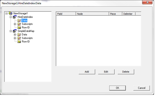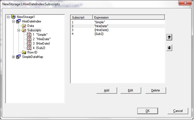 今回は添え字を 4 つ (定数 2 つ、HireDate、IdKey (Sub2)) を使います。 各インデックスマップは IdKey を作成できる必要があります。 通常は、添え字の中にあるものですが、データの一部となっている場合もあります。
