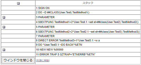 そんなときは、エラー処理にて Do BACK^%ETN を実施することで、IRIS側で強制的にスタック情報を記録することができます。
