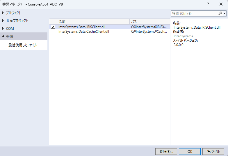 1. IRISの.Net Native API用のdllの参照設定を追加します。